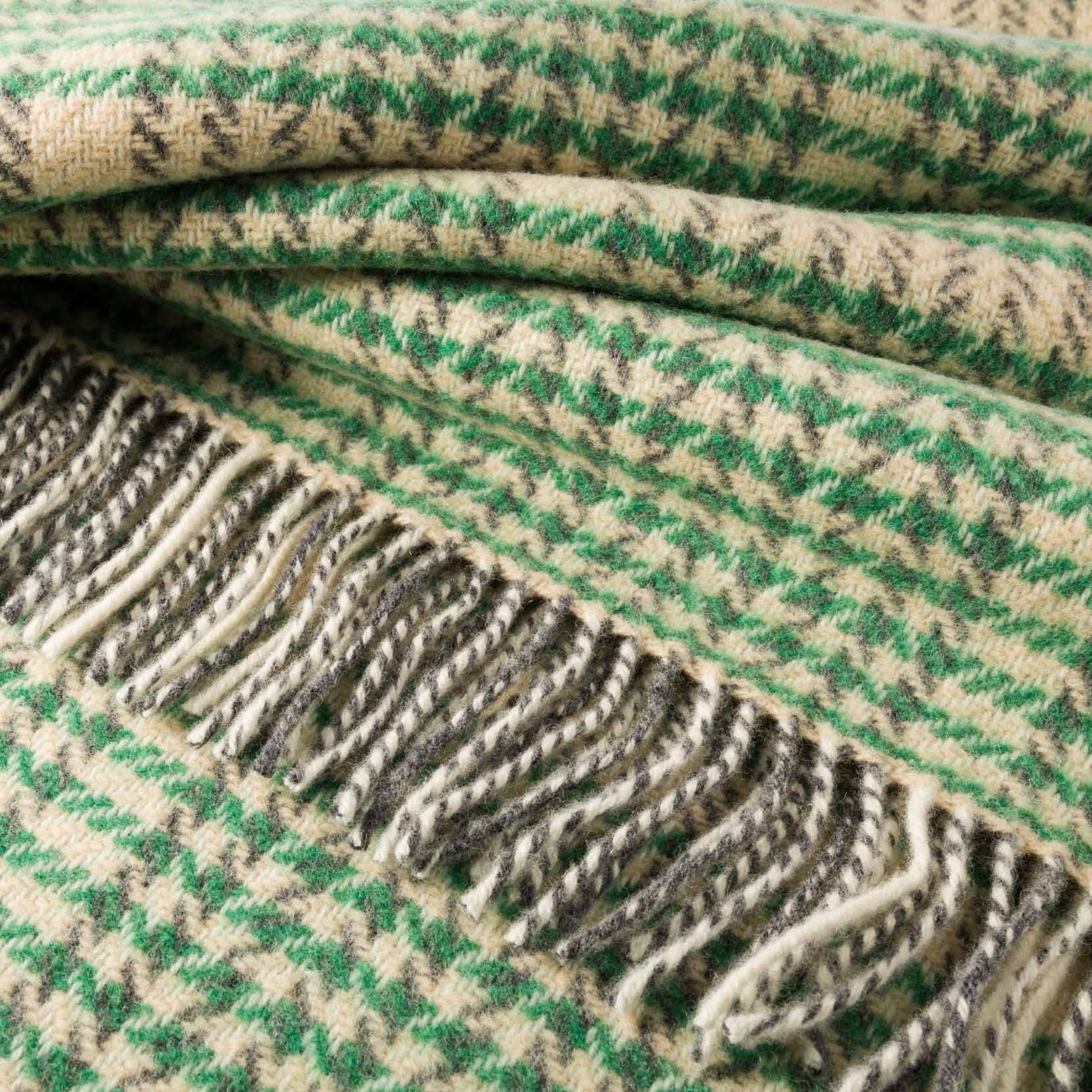 Die Merino Wool Cashmere Throw in Grün-Creme mit feinem Herringbone-Karo vereint elegante Optik mit außergewöhnlicher Materialqualität. Aus einer edlen Mischung aus 95 % Merinowolle und 5 % Kaschmir gefertigt, entsteht eine Decke, die durch ihre besondere Weichheit, natürliche Wärme und leichte Struktur überzeugt.