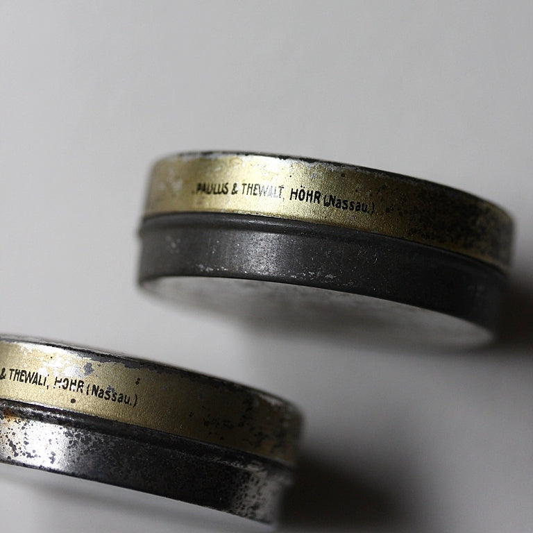 Diese kleine Blechdose aus einer deutschen Apotheke ist ein charaktervolles Relikt früher Hautpflege- und Medizingeschichte. Bedruckt mit „Apotheke Rombach“ und klassischer Typografie, trägt sie die Spuren einer Zeit, in der selbst einfache Gebrauchsgegenstände mit gestalterischem Anspruch gefertigt wurden.