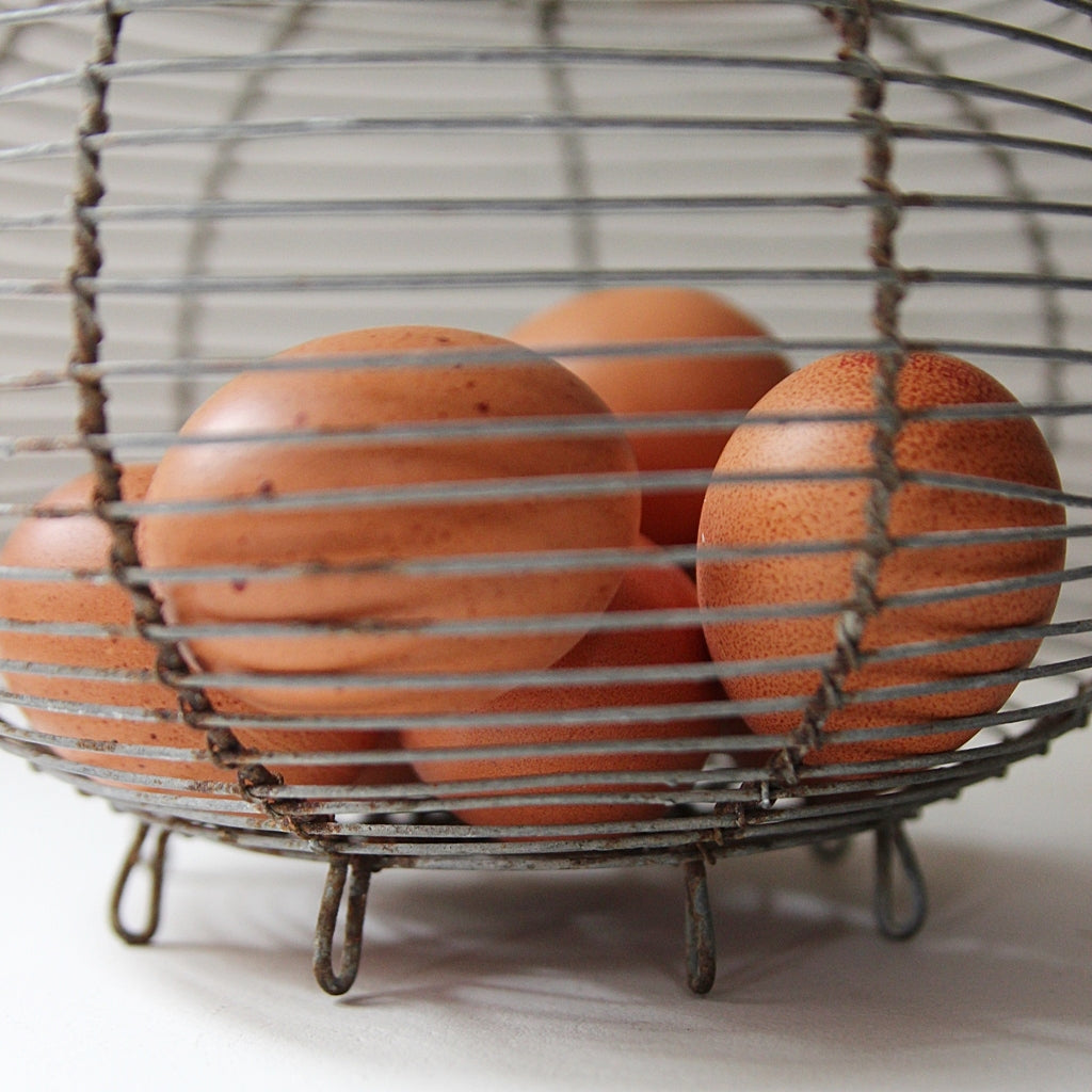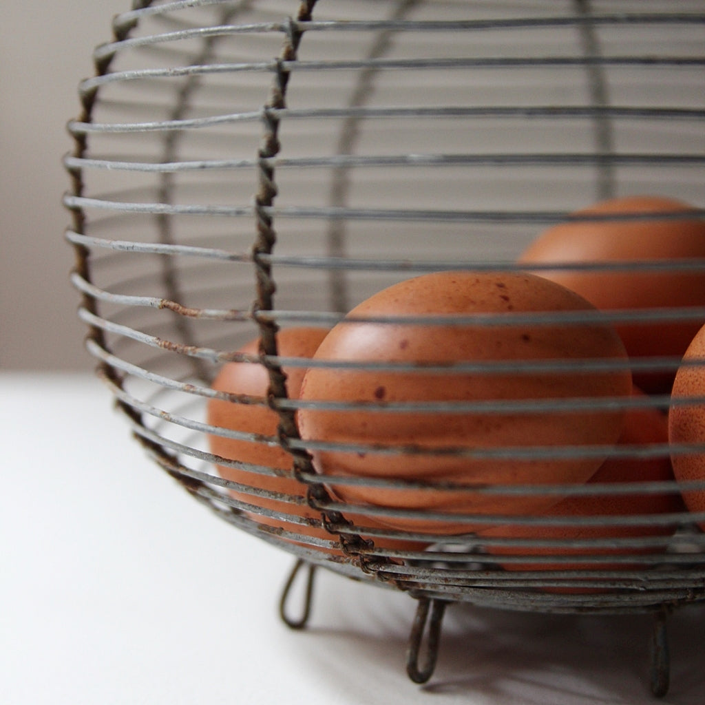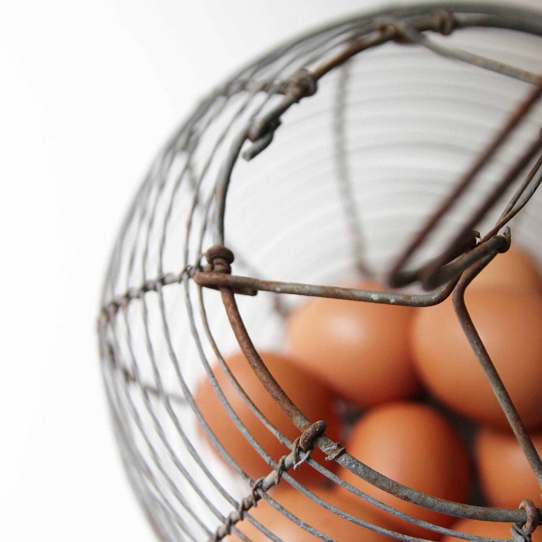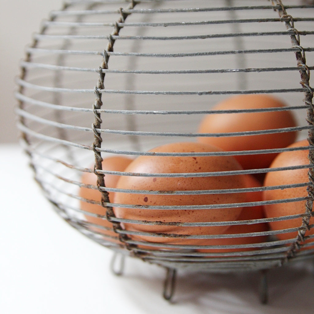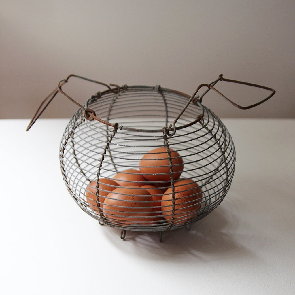 Die offene Drahtstruktur sorgt für eine gute Luftzirkulation und macht den Korb ideal zur Aufbewahrung von Eiern oder Gemüse. Gleichzeitig ermöglicht die Konstruktion, mehrere Eier gleichzeitig im Wasser zu kochen – eine praktische Lösung, wie sie früher in vielen Haushalten verwendet wurde.