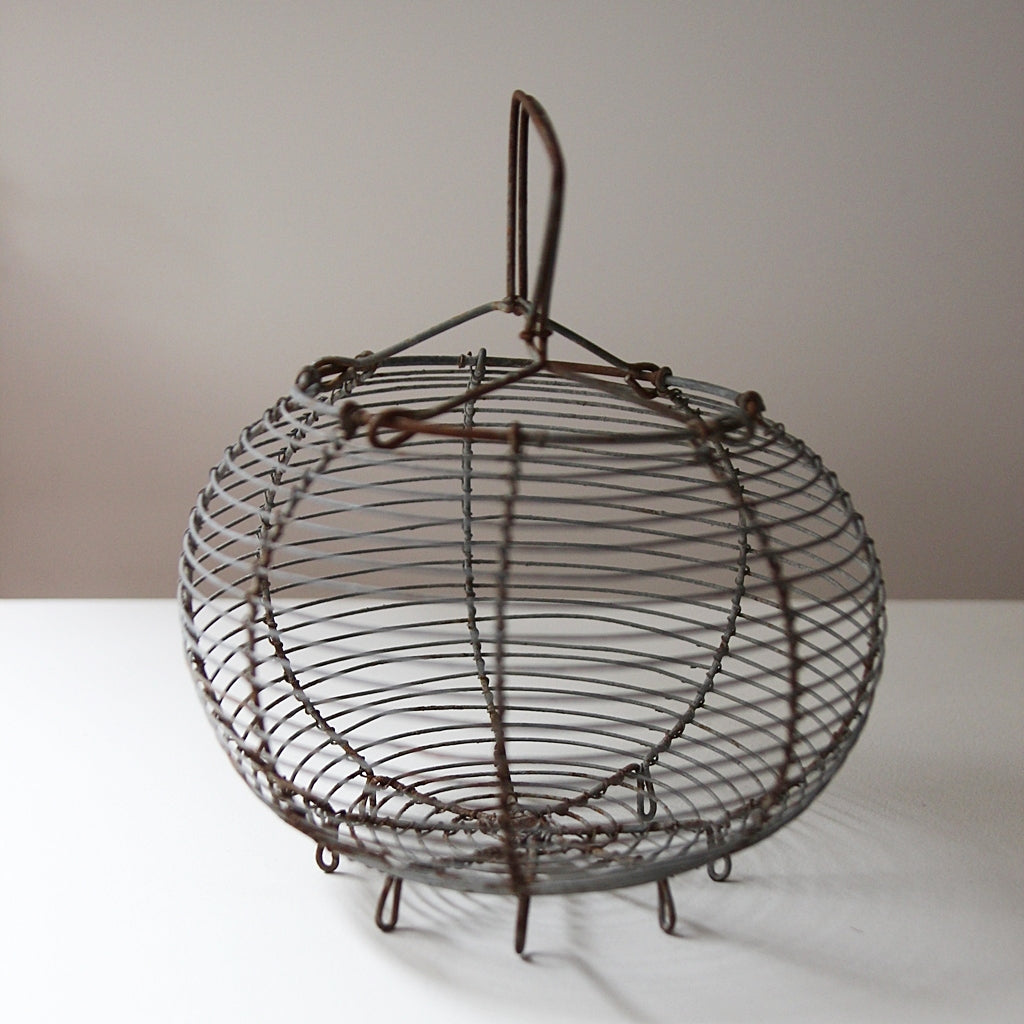 Dieser rustikale Drahtkorb im französischen Stil ist ein authentisches Stück ländlicher Alltagskultur. Gefertigt aus Metall und mit einer schönen, gewachsenen Patina versehen, verbindet er funktionale Einfachheit mit charaktervoller Ausstrahlung.