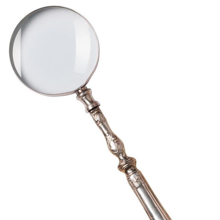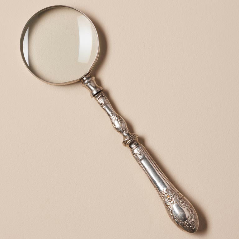 Diese Lupe vereint nostalgischen Charme mit funktionaler Präzision. Der kunstvoll gestaltete Griff im Stil antiken Bestecks verleiht ihr eine besondere Eleganz und erinnert an klassische Tafelkultur vergangener Zeiten. Die Glaslinse sorgt für eine klare und zuverlässige Vergrößerung feiner Details.
