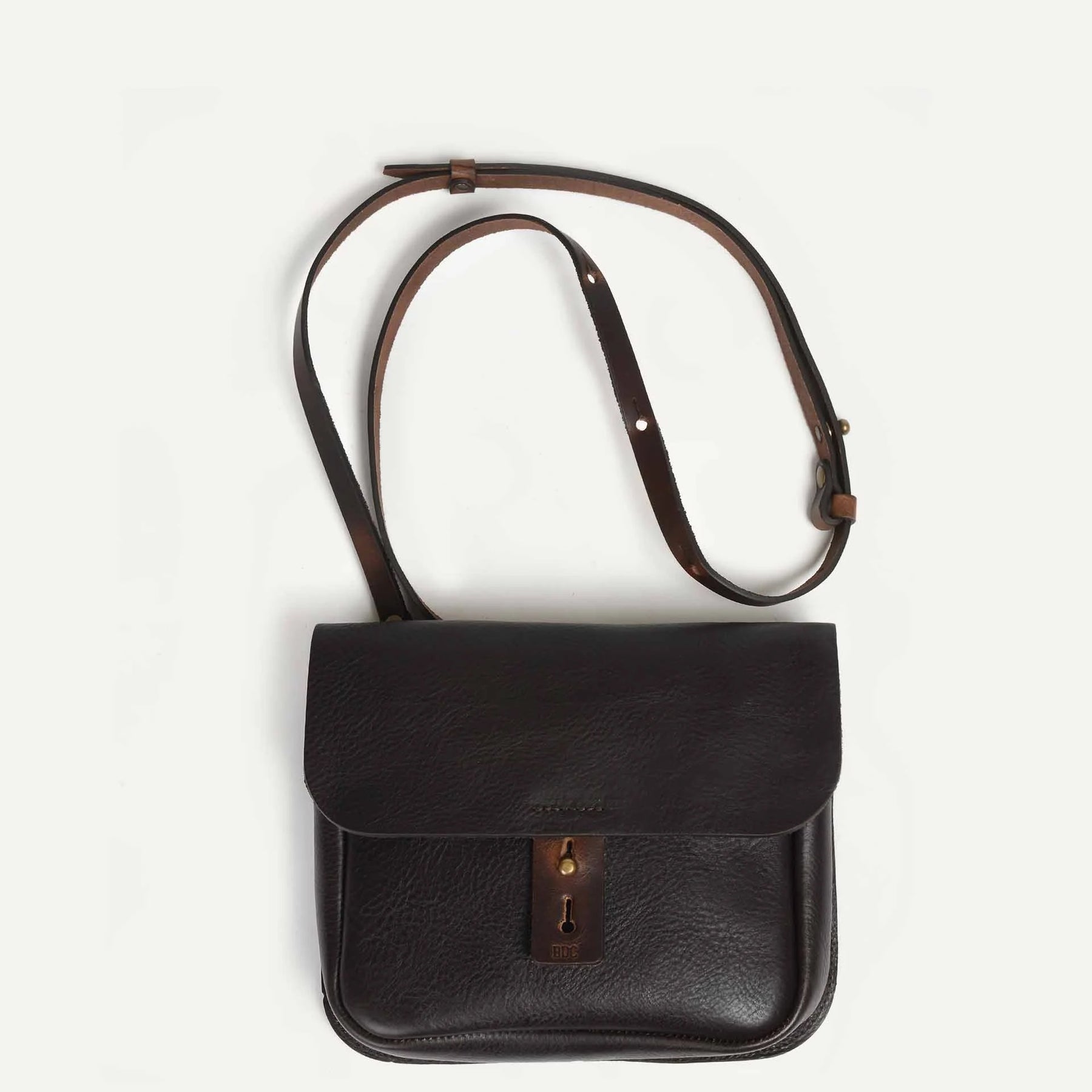 Gefertigt wird sie aus hochwertigem, pflanzlich gegerbtem Leder, das mit der Zeit eine natürliche Patina entwickelt und immer schöner wird. Die klare Form und die robuste Verarbeitung machen die Tasche zu einem zuverlässigen Begleiter für jeden Tag – ob unterwegs in der Stadt oder auf Reisen.