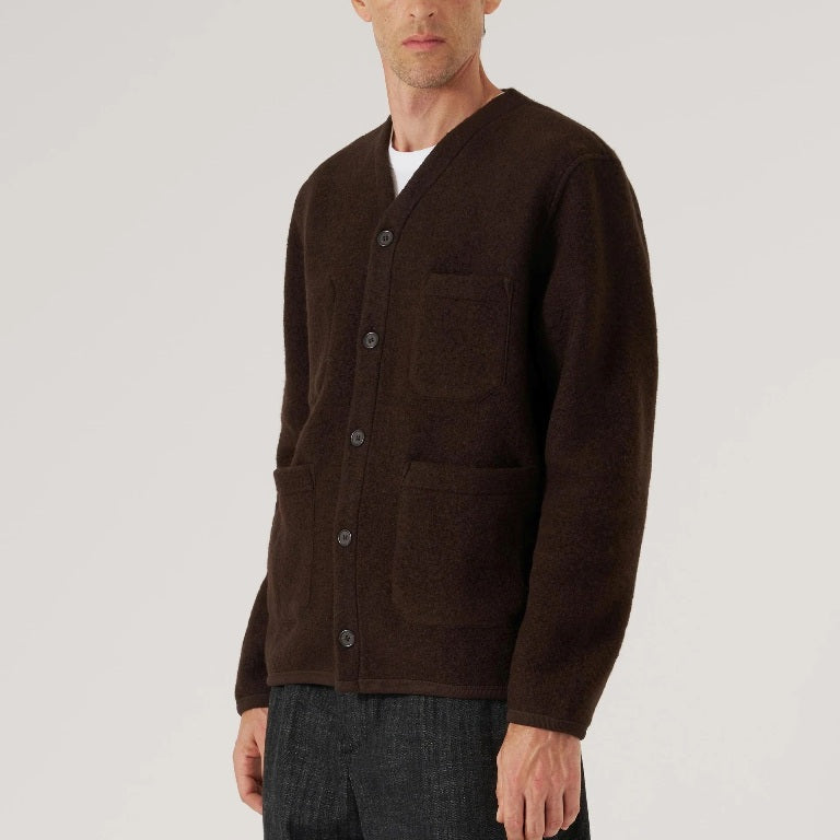 Gefertigt im Norden Portugals bietet der Cardigan angenehme Wärme, Atmungsaktivität und Langlebigkeit. Die weiche Wollfleece-Oberfläche sorgt für ein angenehmes Tragegefühl und einen natürlichen Look.