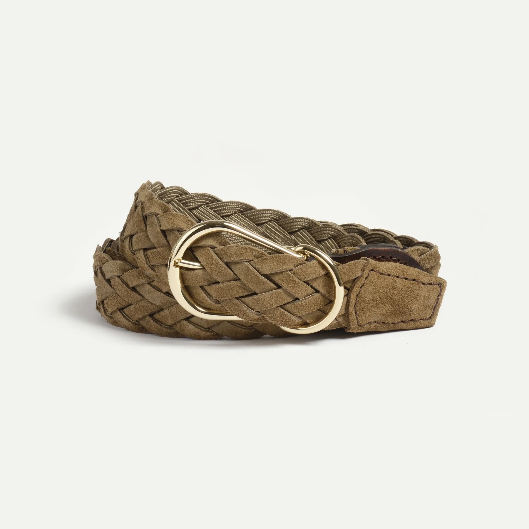 Braided belt made of soft khaki suede by Bleu de Chauffe. The fine braiding ensures a flexible fit and can be individually adjusted - without fixed holes.