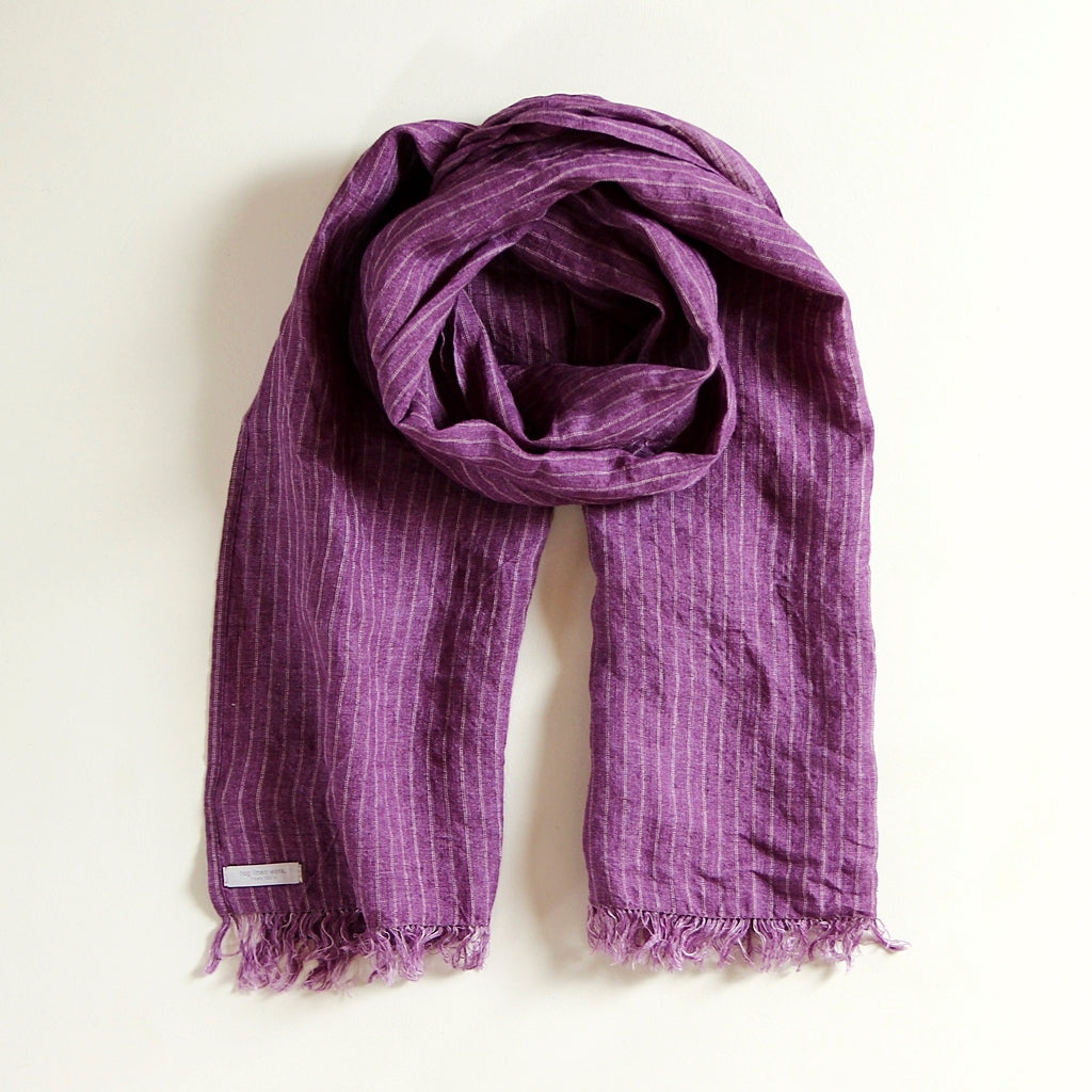 Die feine Streifenoptik und die ausgefransten Kanten verleihen dem Schal eine lässige, textile Note. Schlicht, ehrlich und zeitlos – ein Accessoire, das mit jedem Tragen an Charakter gewinnt und immer schöner wird.