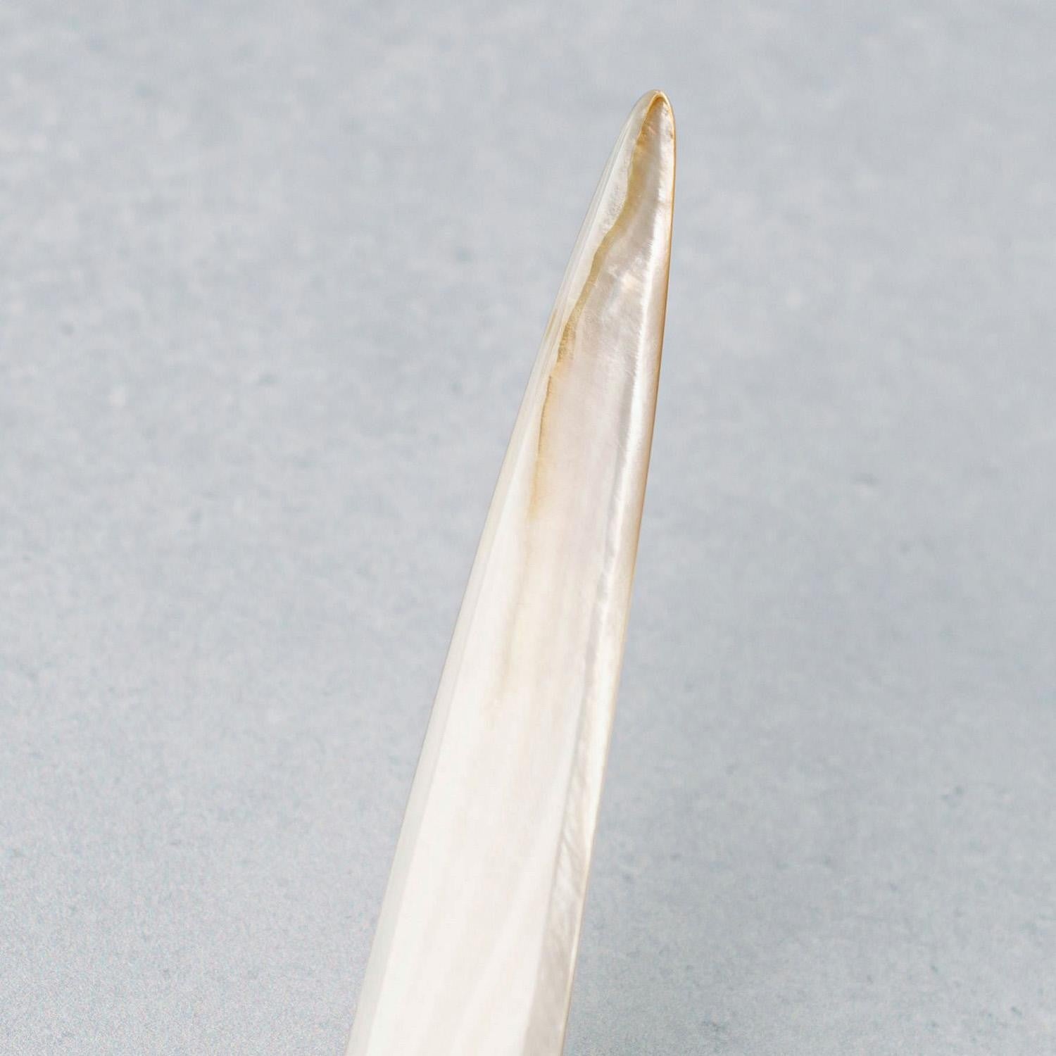 Der Mother of Pearl Letter Opener verwandelt eine alltägliche Handlung in ein kleines, bewusstes Ritual. Gefertigt aus natürlichem Perlmutt, besticht er durch seine schimmernde Oberfläche, die je nach Lichteinfall immer neue Farbnuancen und feine Maserungen zeigt. Jedes Stück ist ein Unikat.