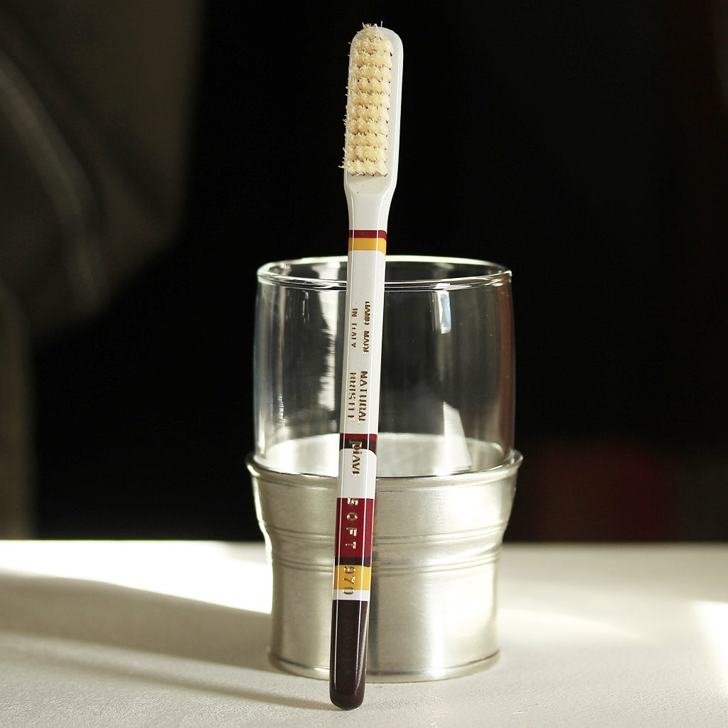 Die Lavorati a Mano Kollektion bleibt ihrem Vintage-Erbe treu und wird gleichzeitig zeitgemäß neu interpretiert. Jede Zahnbürste entsteht einzeln aus handverlesenen Acetatplatten und verkörpert die perfekte Balance aus Ästhetik, Funktionalität und Langlebigkeit.
